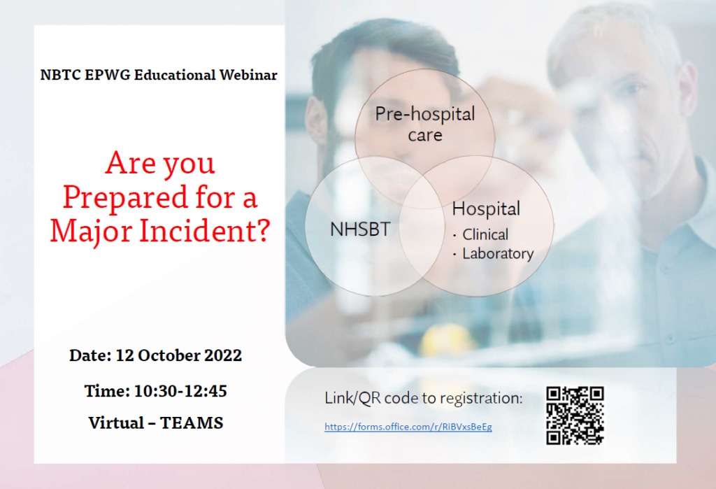 Wednesday 12 October 2022 – 10:30:12:45 – NBTC Emergency Planning Working Group – Educational Webinar – Are you Prepared for a Major Incident?
