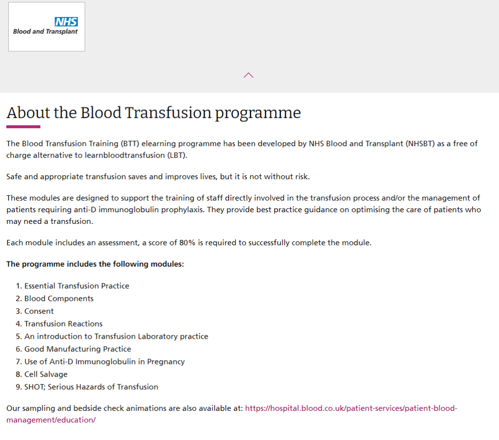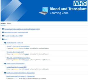 The modules can also be found on the NHS Blood and Transplant (NHSBT) – Learning Zone