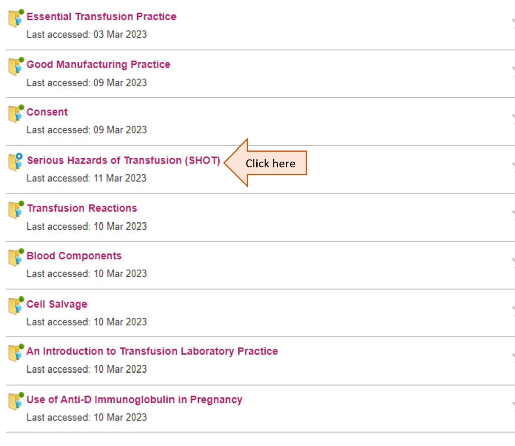 Accessing SHOT e-learning modules