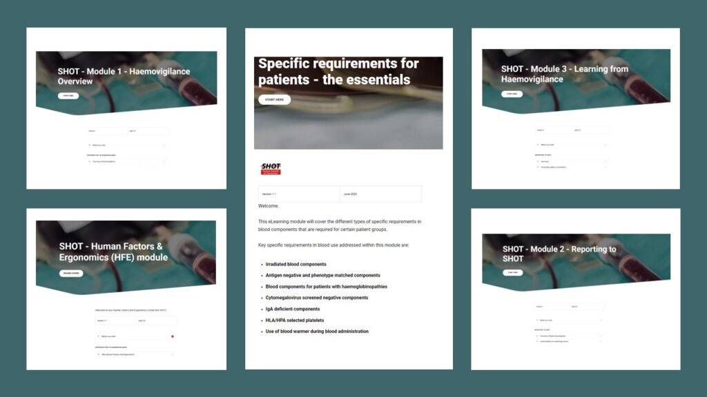 The e-learning modules have been created with funding support from the Health Education England and have been designed to increase awareness about patient safety related to transfusion and the role of haemovigilance in transfusion safety.